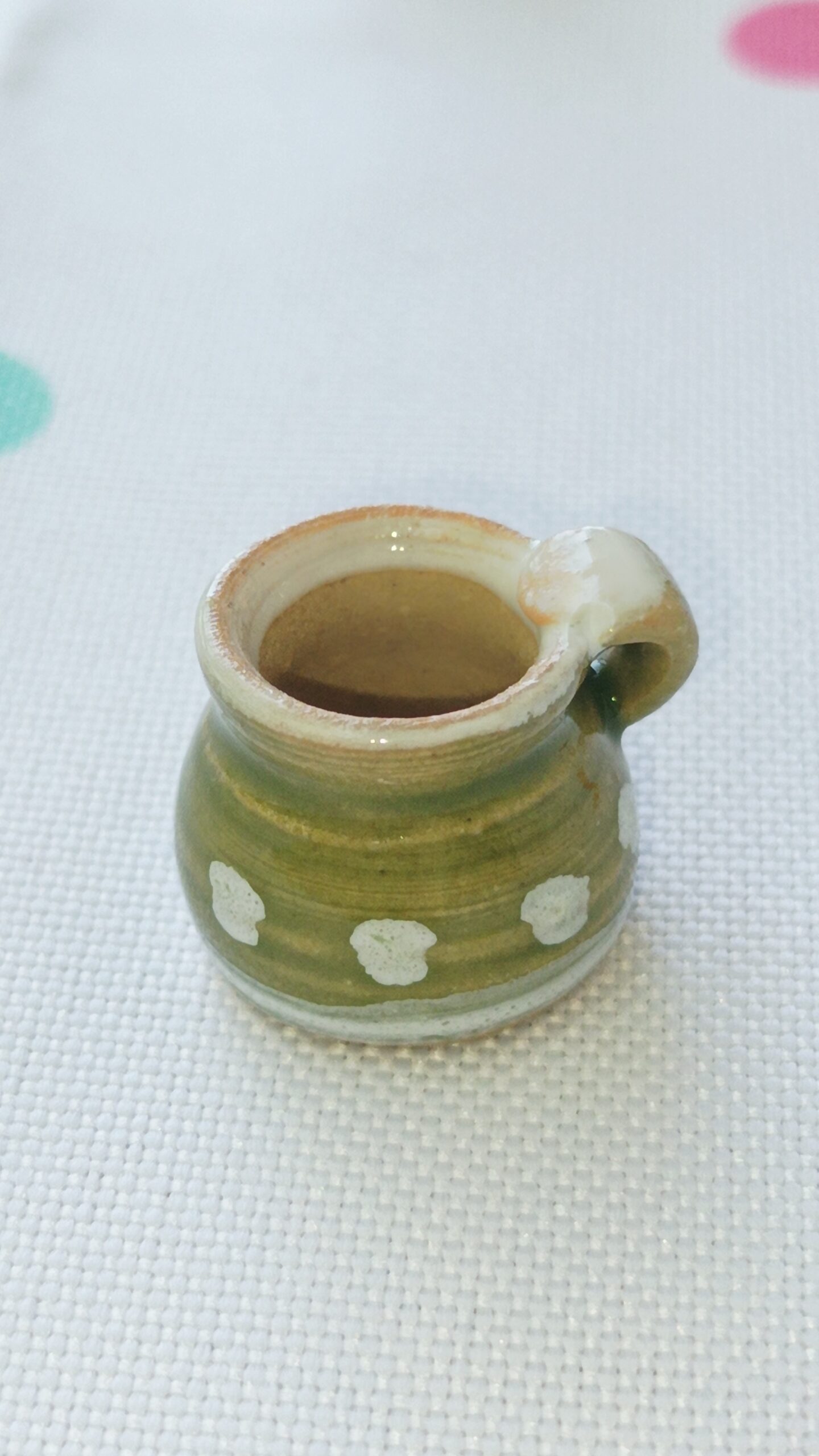 Zelený hrníček s puntíky